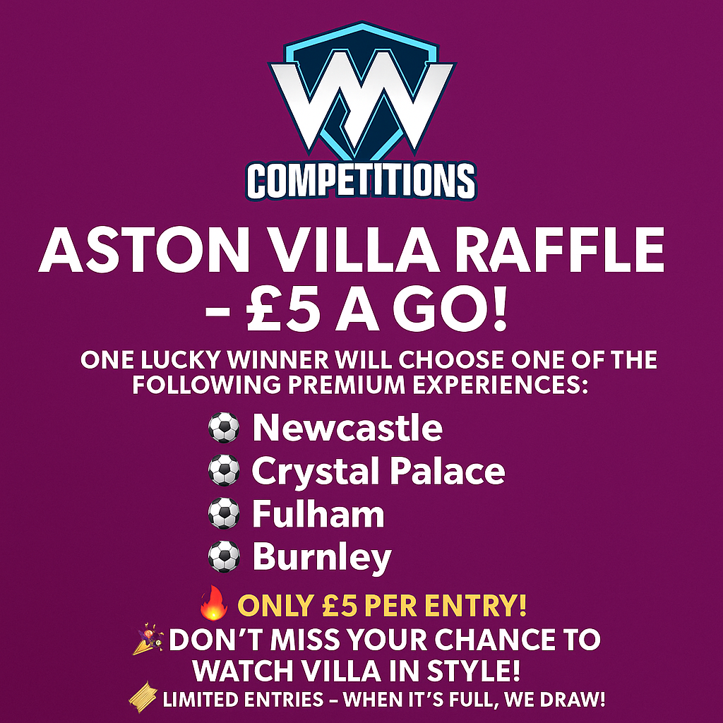 WIN 2 HOSPITALITY TICKETS – Aston Villa vs Burnley Sunday 5 October 2025